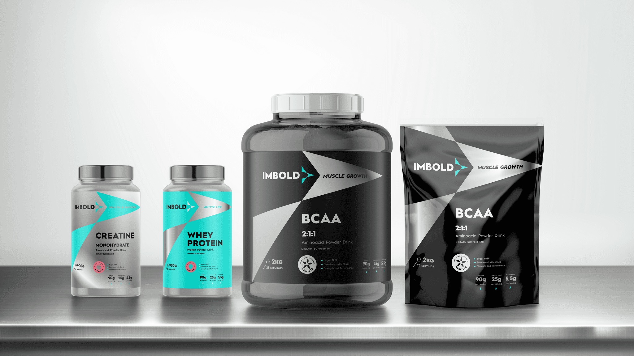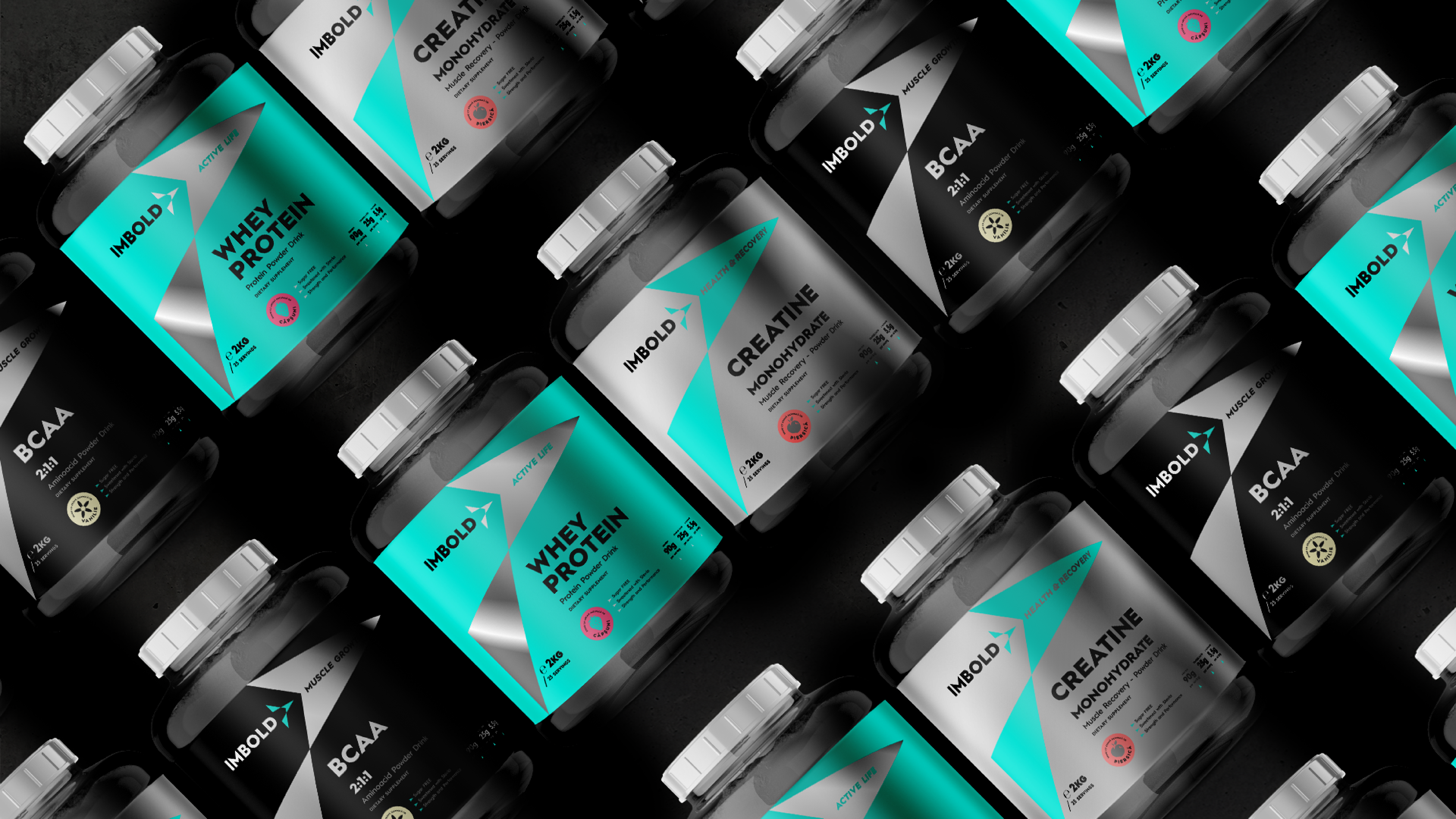 We developed a master packaging system built around a strong, directional visual device derived from the logomark, which not only reinforces the brand idea but also structures the entire layout. This allows for clear differentiation between product categories while maintaining consistency across formats. The portfolio architecture was organised around consumer goals — Active Life, Muscle Growth, and Health & Recovery — making product selection intuitive and relevant. Each category is supported by a distinct colour code, ensuring immediate recognition while preserving a cohesive system. To accommodate multiple flavours without overcomplicating production, we introduced a flexible layer of graphic stickers inspired by the identity. These allow for clear flavour communication while maintaining visual impact and scalability.